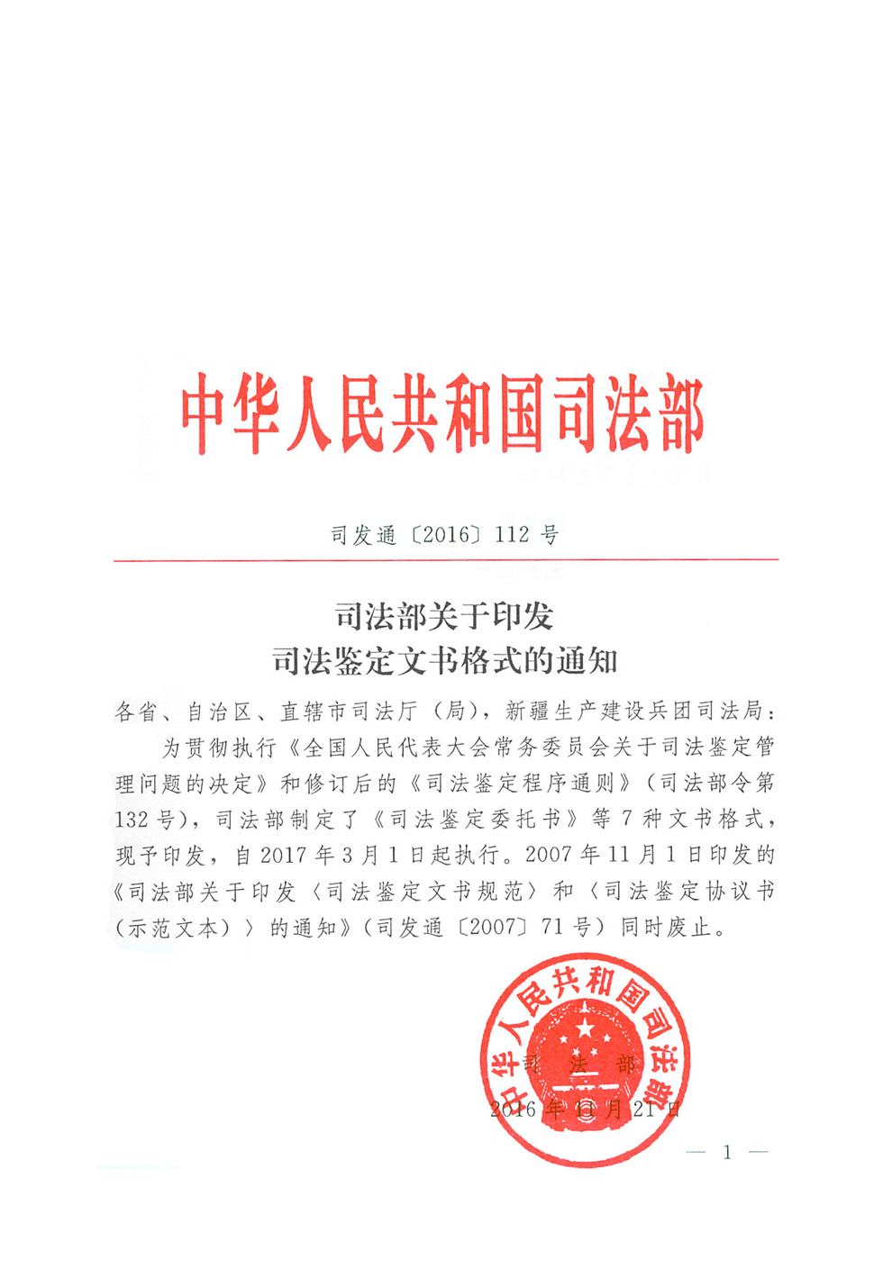 司法部关于印发司法鉴定文书格式的通知